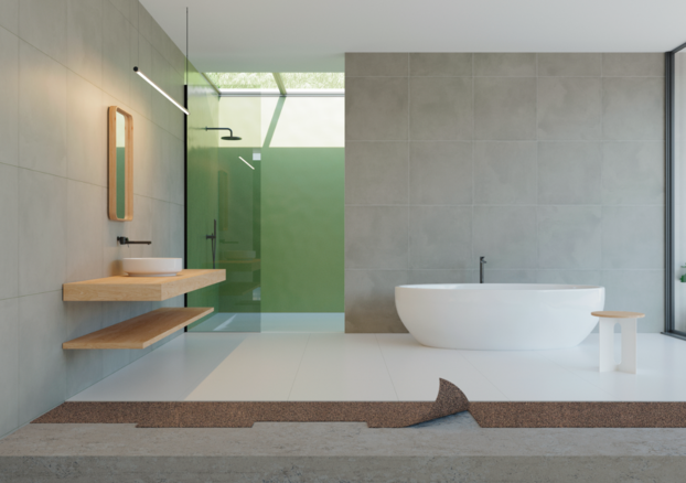 Lámina de corcho aglomerado y reciclado con polvo de neumático para el ruido de impacto en pisos cerámicos, vinílicos, flotantes y de madera. Se instala directamente bajo el piso definitivo. Tiene alta durabilidad y larga resistencia. Producto 100% natural y sustentable.