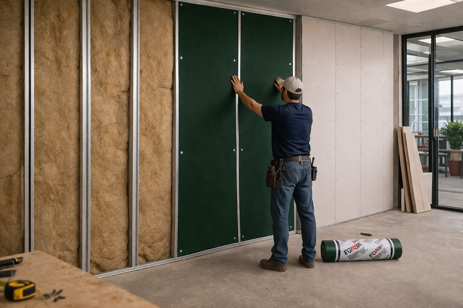 Se instala rápida y fácilmente sobre una de las caras del tabique o sobre ambas si requiere una aislación exigente.